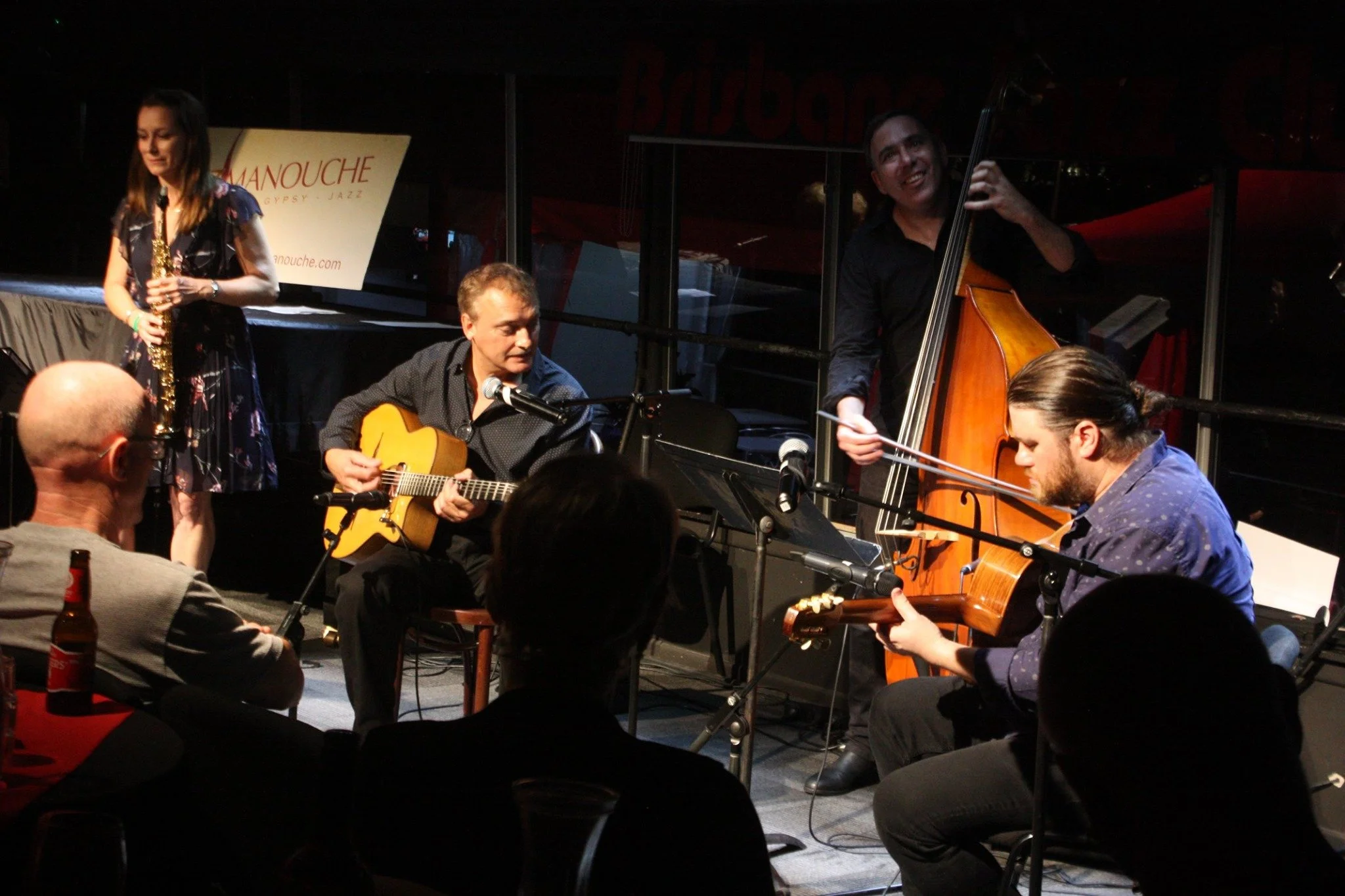 Trending with today’s thriving European jazz manouche scene, OzManouche captures the hearts of young and old with its spontaneity and spark. Flavours of music from the cobbled streets of Paris and rural France fill Brisbane Jazz Club. The energy of manouche jazz pulses through fingers on guitars, violin bows and on to a knee-slapping audience.